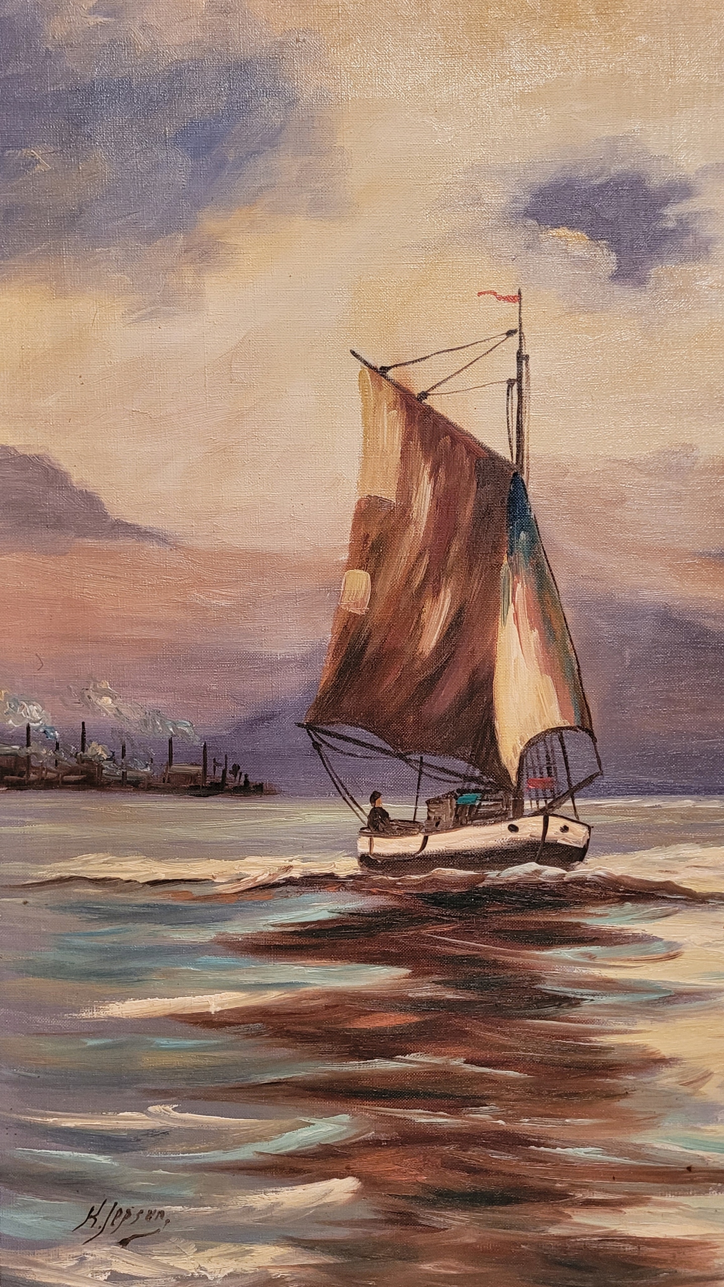 К.ЙЕПСЕН - «РЫБАЛОЧНЫЕ ЛОДКИ», красивая картина маслом.