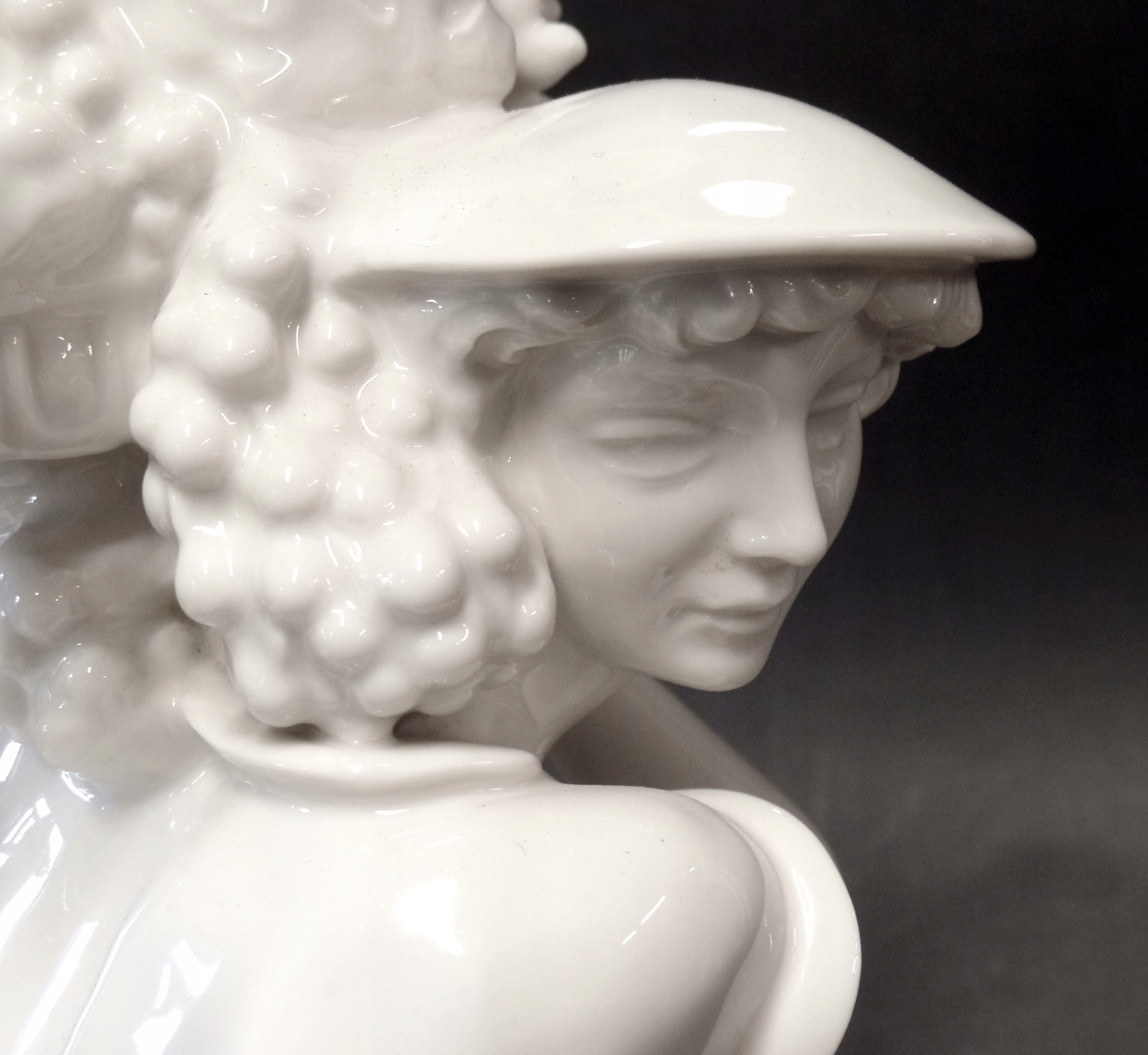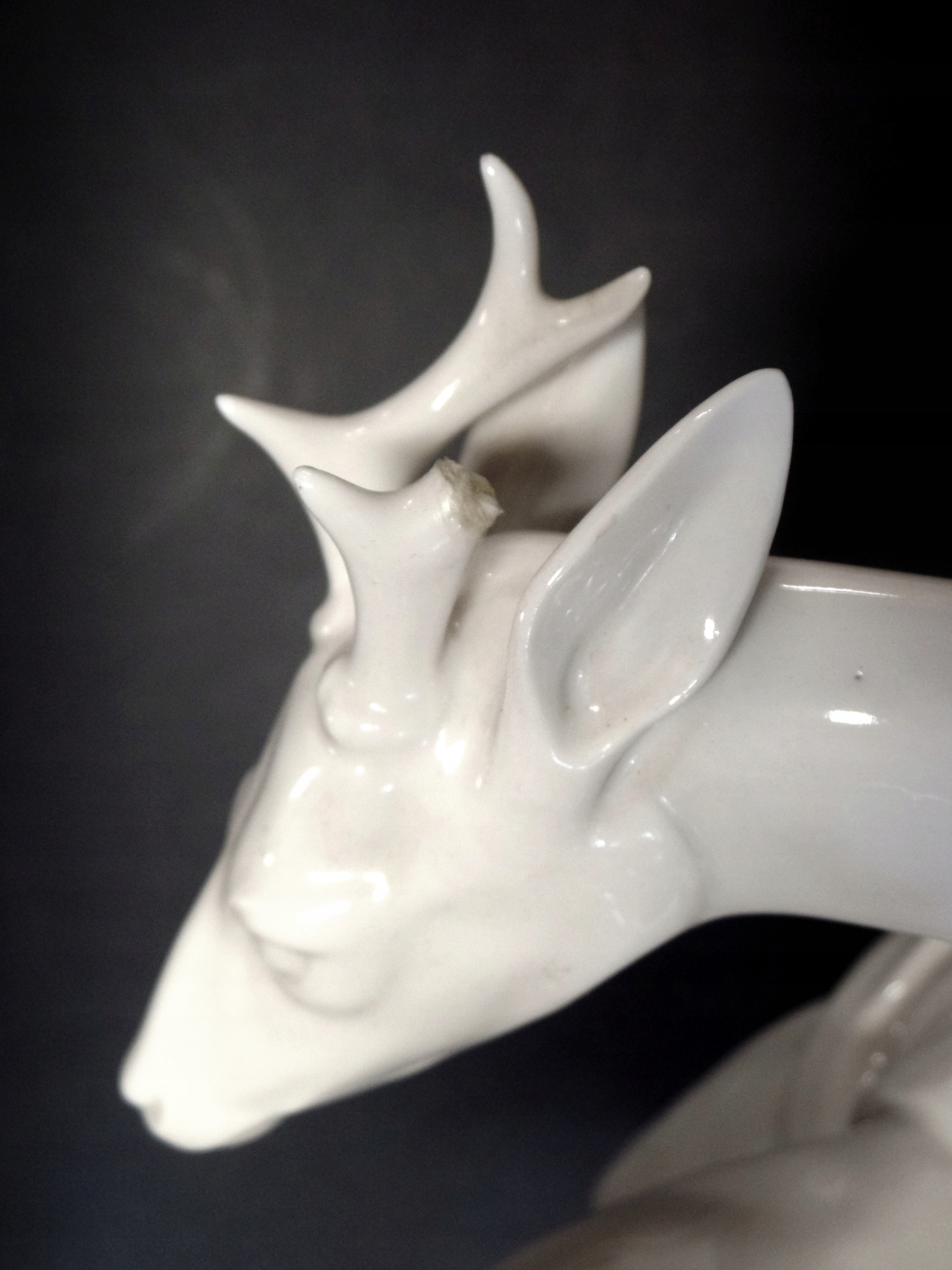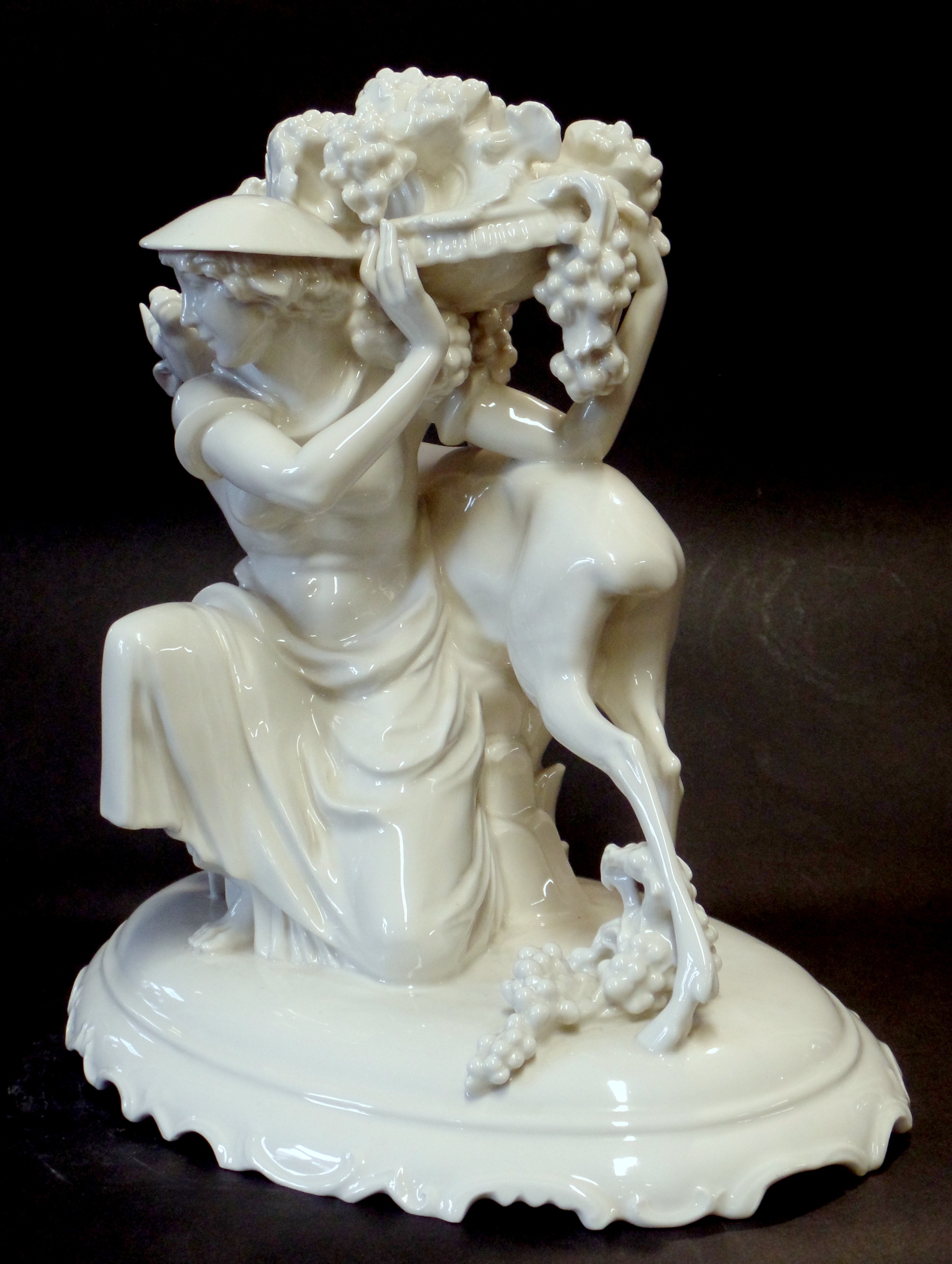 Фарфоровая фигурка, высота 37 см, основание 39 х 28 см. Подпись по мотивам «Карла Туттера». В нижней части основания имеется логотип и номер компании. Германия, Хутшенройтер, 1930-е гг. Состояние: у козла отломан один рог (отсутствует).