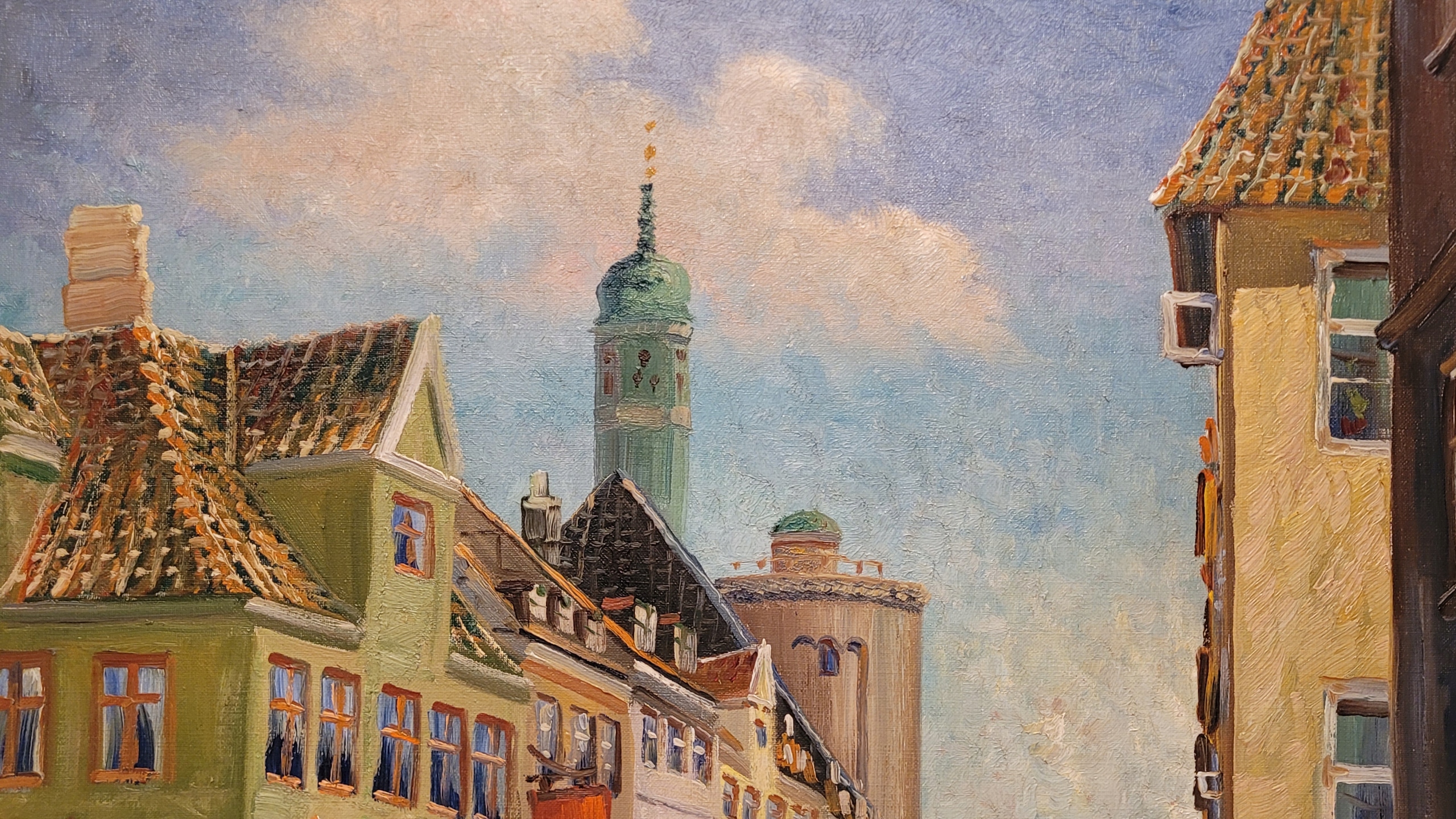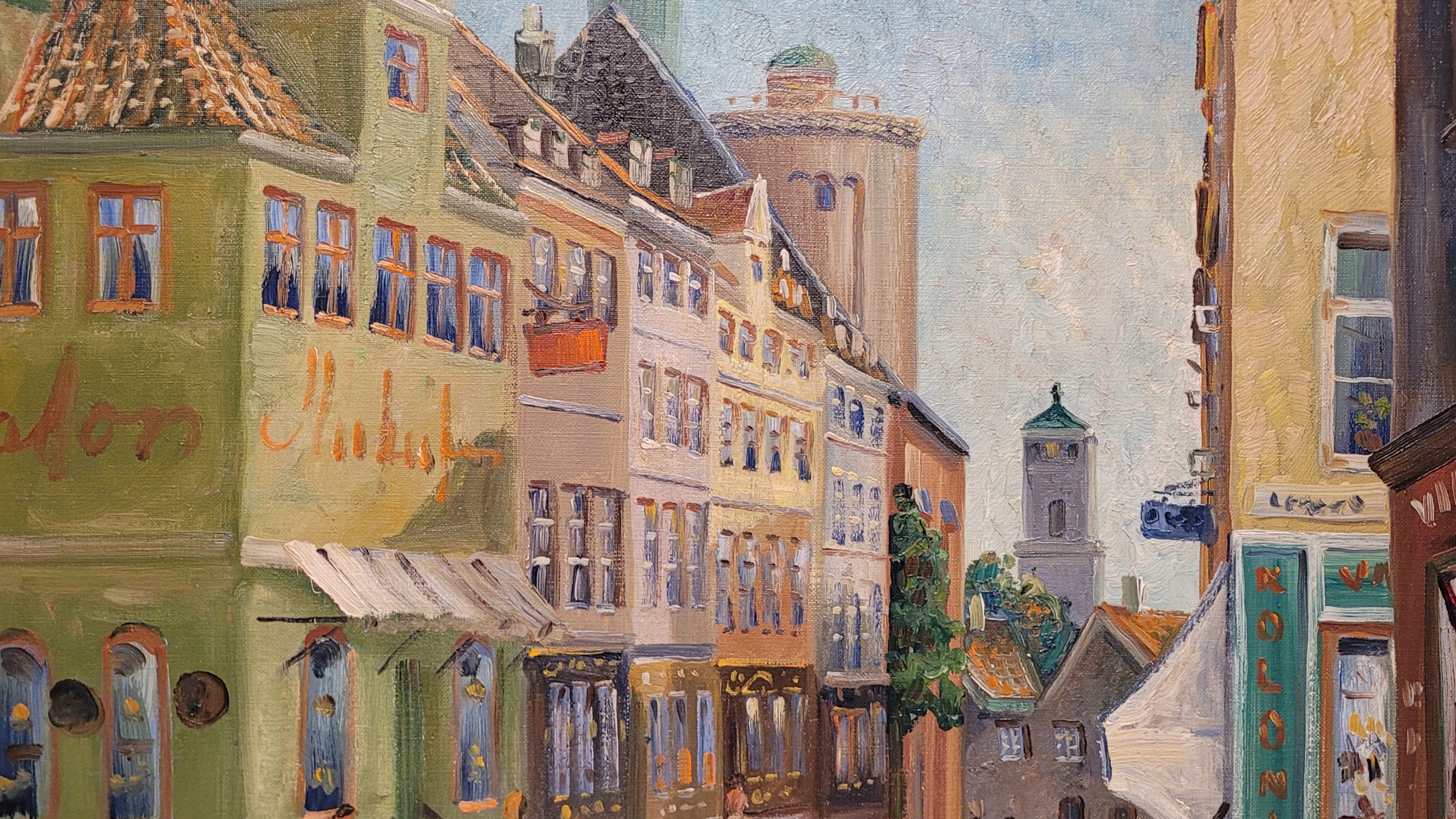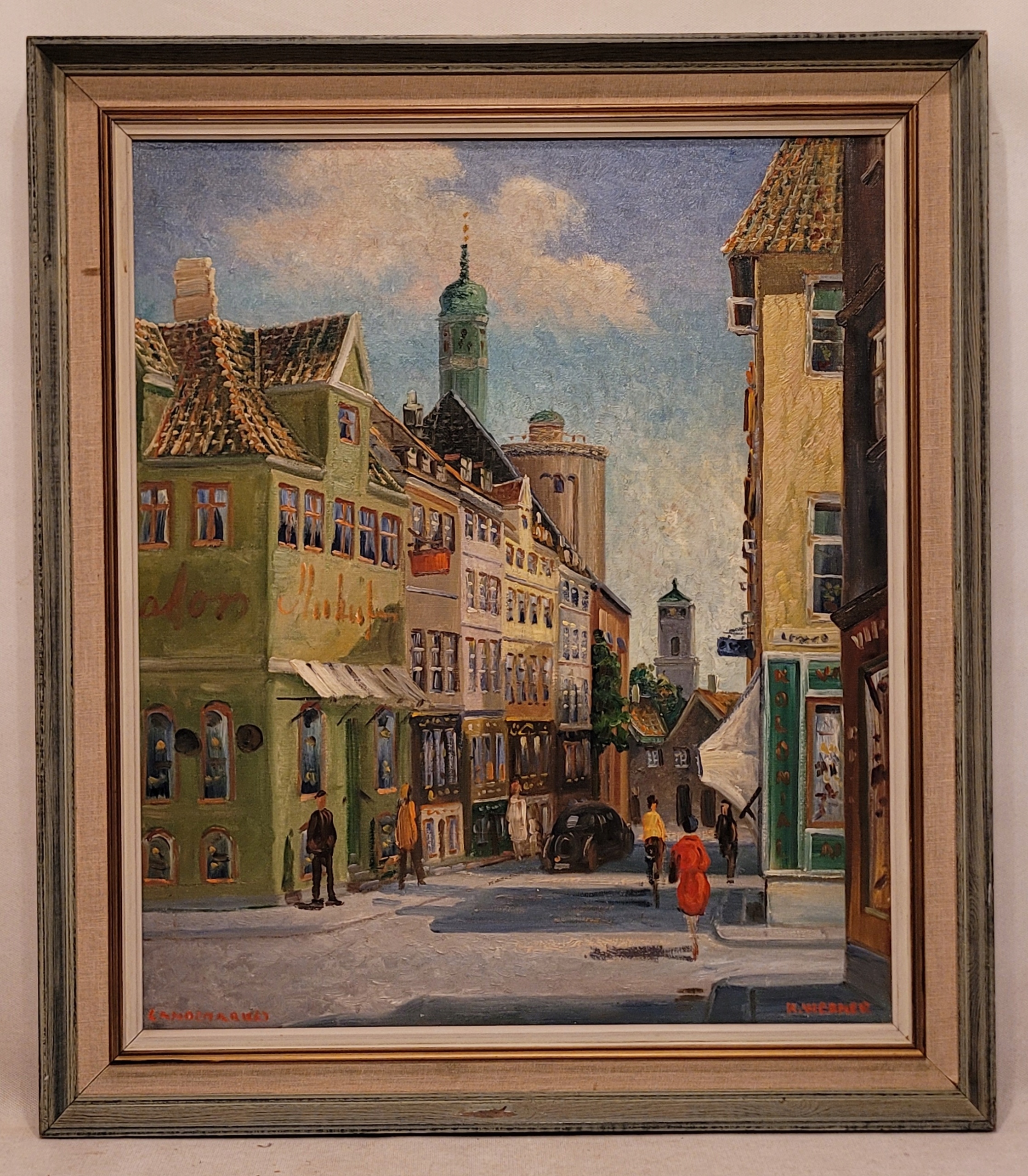 Предмет продажи - красивая, старинная картина маслом " УЛИЦА ЛАНДЕМАРКА - КОПЕНГАГЕН".