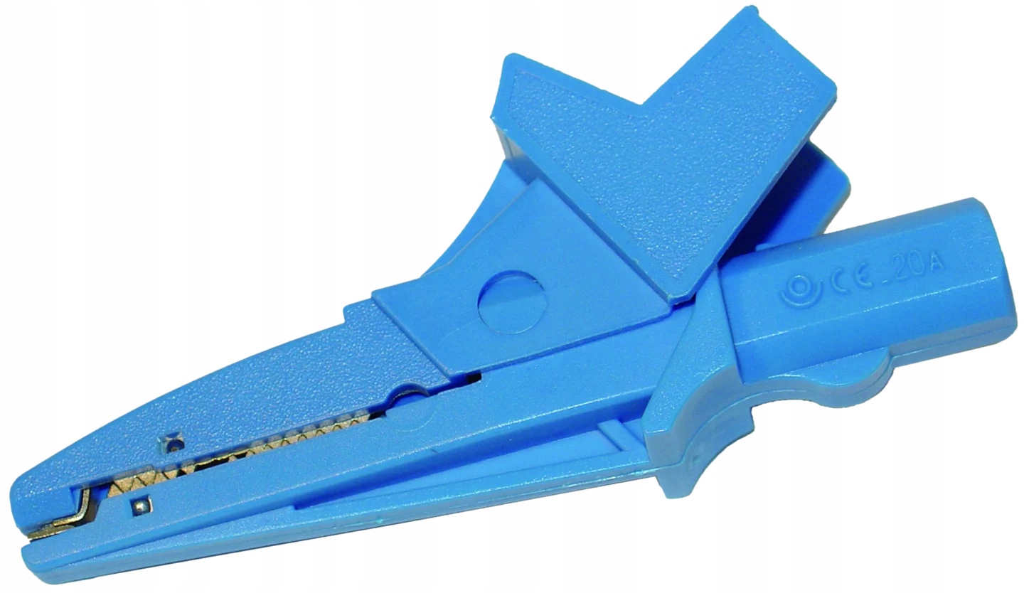 Зажим «крокодил» — важный элемент измерительной системы. Безопасные изолированные зажимы типа «крокодил» с гнездом Ø 4 мм предназначены для подключения измерительных проводов с экранированными вилками. Захваты имеют широкий диапазон раскрытия, что позволяет захватывать провода диаметром 16 мм. Помимо зубчатой поверхности, челюсти имеют плоские поверхности для захвата мелких предметов. Его стоит использовать, когда использование зондов невозможно или неудобно. Зажимы «крокодил» бывают разных цветов. Представлена синяя модель с максимальным рабочим током 20 А.