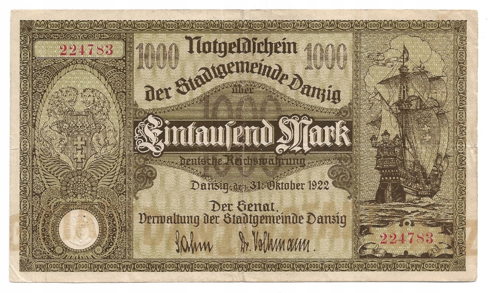 Покупая «K111 - Wolne Miasto Gdańsk - 1000 marek 1922 r. - Stan 3» данный товар из каталога «1916 - 1924 марки и рубли» вы можете быть уверены, что после оформления заказа, доставки в Украину, вы получите именно то, что заказывали, в оговоренные сроки и европейского качества.