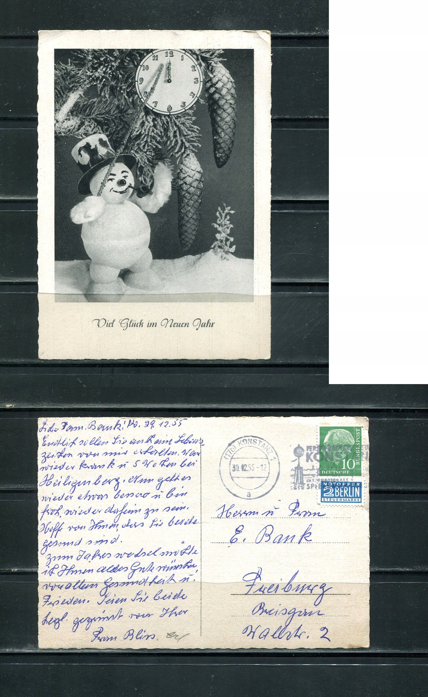 K14546)Karta gratulacyjna: Nowy Rok, wyslany 1955