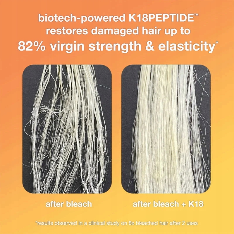 Создает волосы как новые: наш революционный пептид K18, проникая в самые внутренние слои волос и достигая основных полипептидных цепей, просто правильный размер и состав, чтобы воссоединить разорванные цепи, отвечающие за силу и эластичность волос.