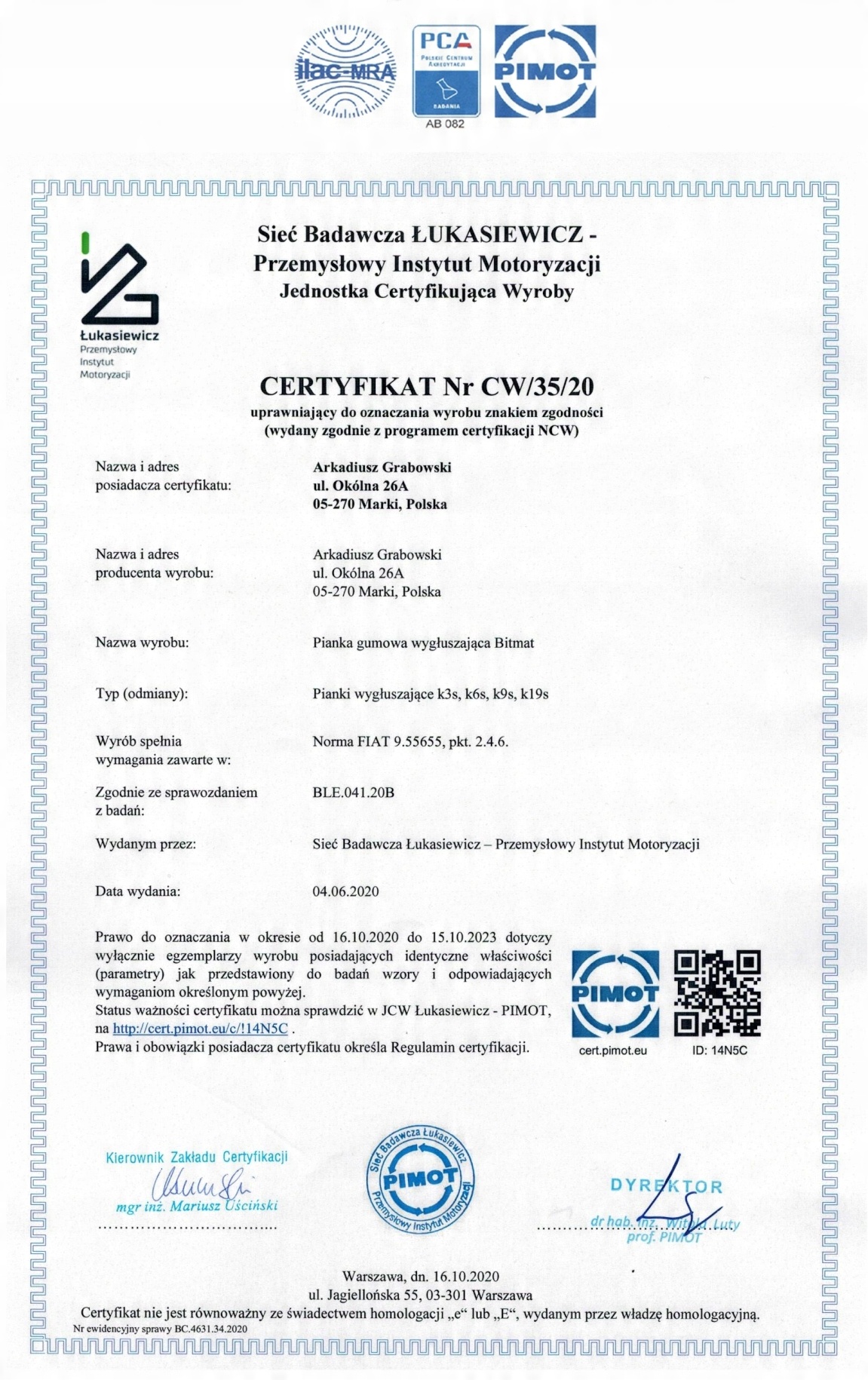 Сырье проверено PIMOT - Институт автомобильной промышленности