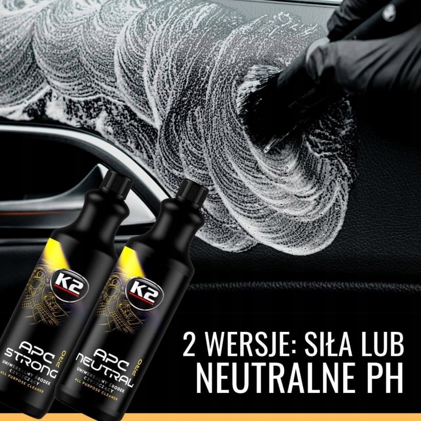 K2 APC STRONG PRO — мощный брат K2 APC Neutral Pro. Чрезвычайно сильное, универсальное, универсальное и малопенящееся средство для очистки всех поверхностей внутри и снаружи автомобиля. Сосредоточьтесь, максимально сосредоточившись на своей цели. Уровень его прочности зависит от степени разбавления.