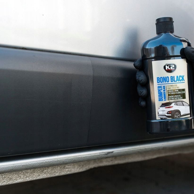 K2 BONO BLACK прочно сцепляется с пластиком и восстанавливает естественный цвет, дополнительно подчеркивая текстуру.