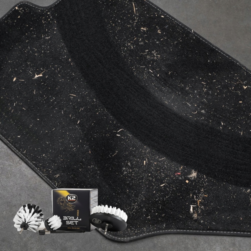 K2 BRILL SET PRO — профессиональный набор чистящих щеток для дрели или шуруповерта, предназначенный для быстрого и эффективного удаления грязи из салона автомобиля. Идеально подходит для чистки обивки, ковров, потолков и пластиковых элементов. Плотная щетина и массивные металлические ручки обеспечивают длительное и безотказное использование даже при интенсивной работе.