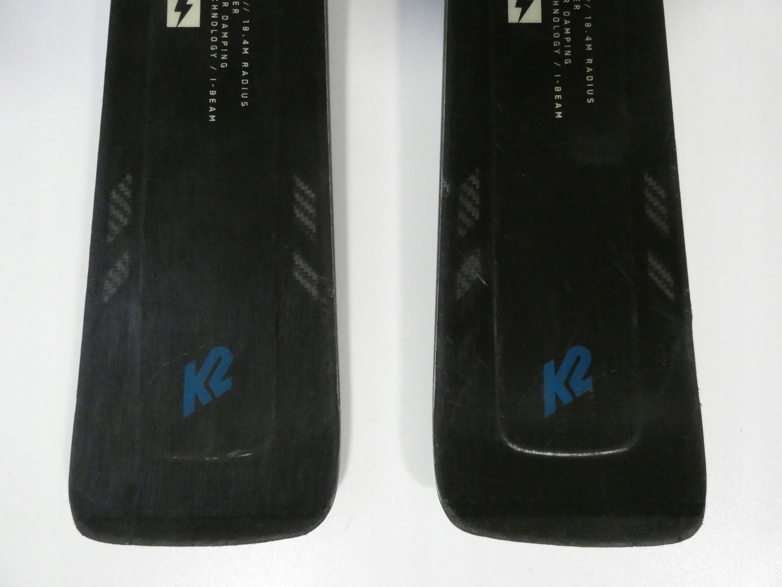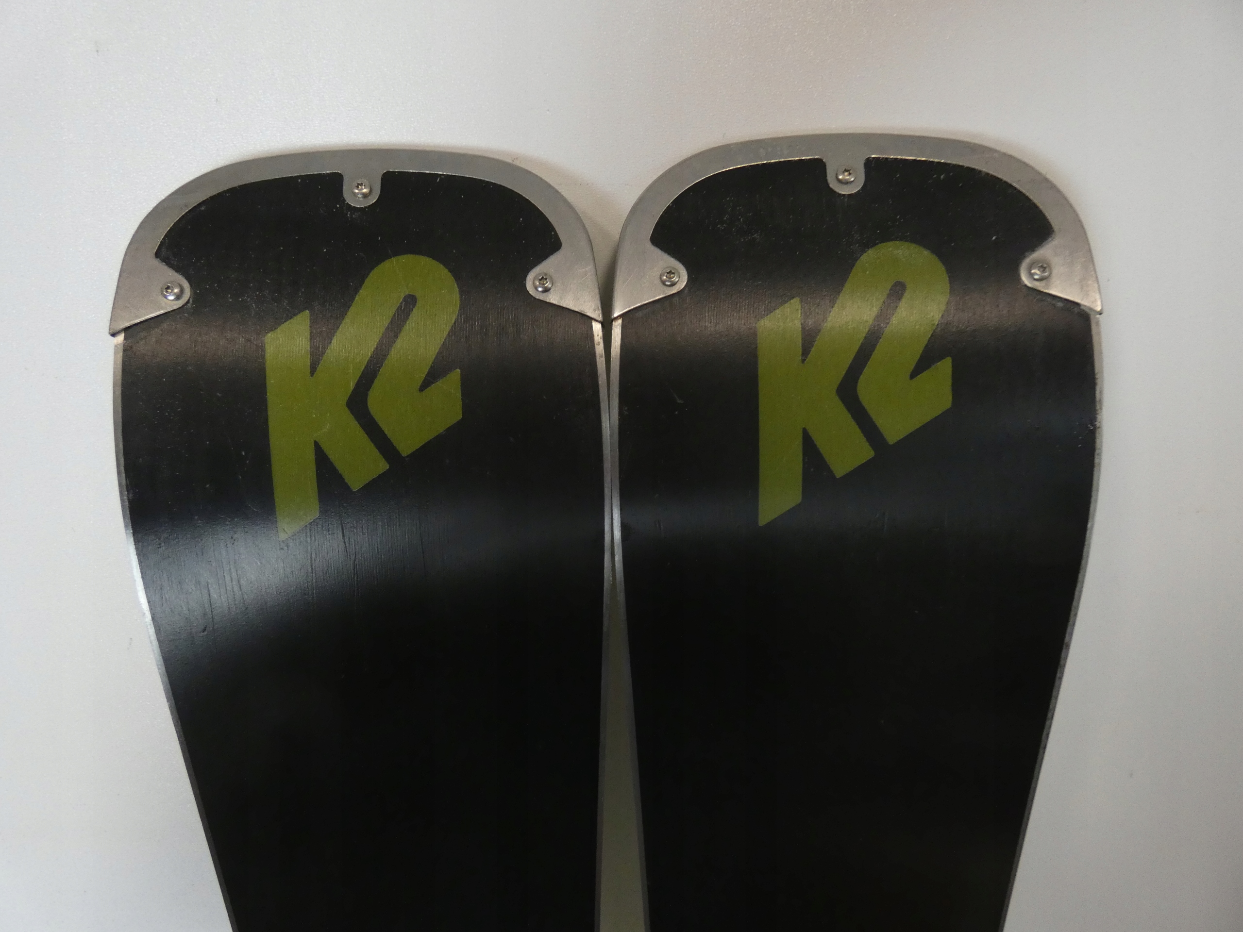 Следы нормальной, не интенсивной эксплуатации - вмятины и мелкие царапины на графическом оформлении лыж и креплений