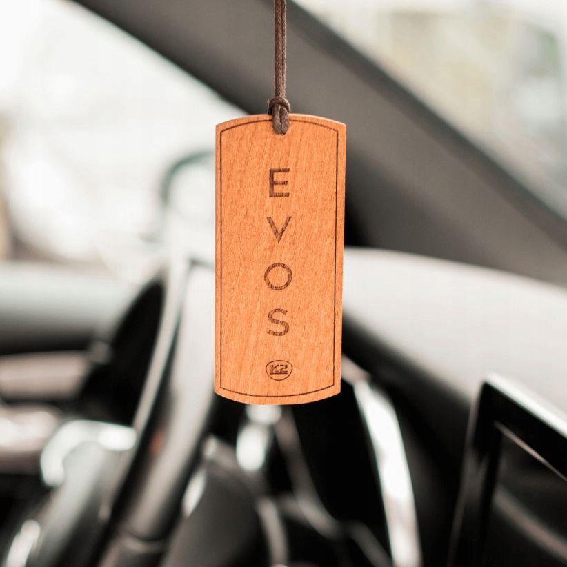 K2 EVOS — уникальный автомобильный освежитель воздуха в форме деревянного кулона, вдохновленный природой. Уникальная форма легендарного жетона украшает салон автомобиля и придает ему элегантность.