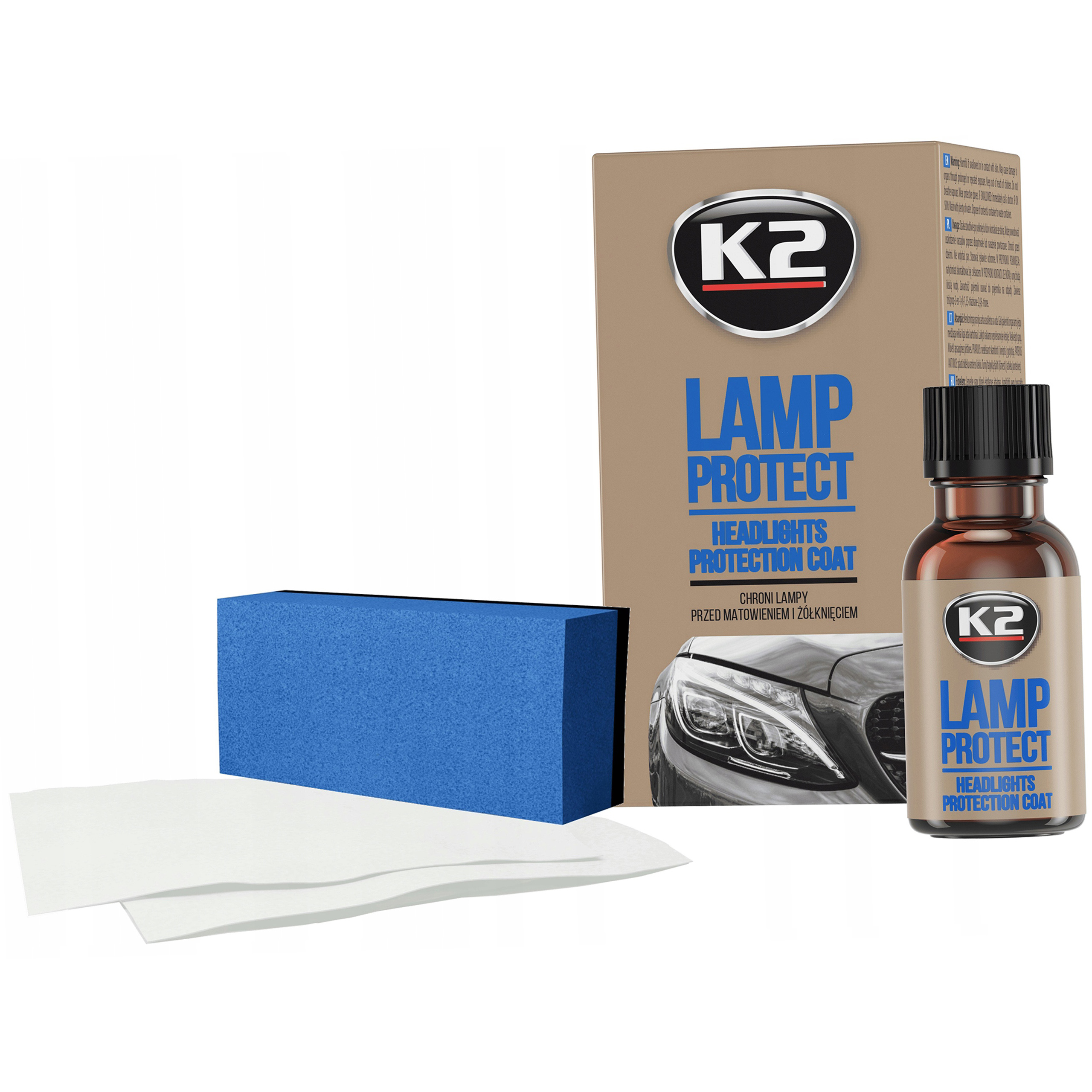 K2 LAMP PROTECT — долговечное защитное покрытие, предназначенное для фар из пластика и стекла. Предотвращает пожелтение и потускнение ламп. Защищает от вредного воздействия УФ-лучей. Сохраняет поверхность лампы чистой, отталкивая воду и облегчая удаление грязи. Защищает фары от легких царапин.