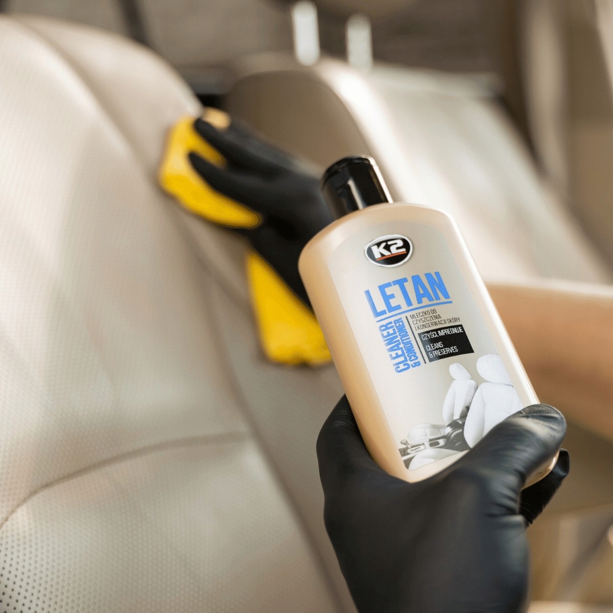 К2 ЛЕТАН – средство в форме молочка, предназначенное для чистки и ухода за кожей в автомобиле. Форма действия 2в1. Благодаря уникальной формуле и использованию качественных чистящих компонентов легко удаляет пятна и грязь.