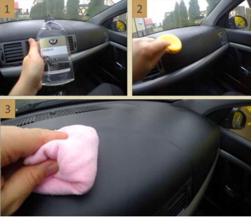 В комплект также входит микрофибра, с помощью которой после нанесения геля K2 OMEGA и небольшого ожидания можно протереть приборную панель или другой пластик для получения окончательного эффекта.