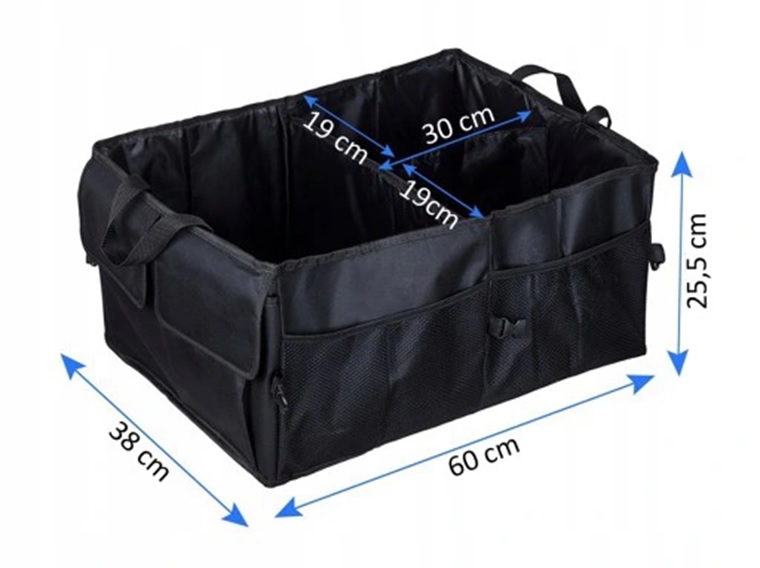 Идеальное дополнение к оборудованию вашего автомобиля. Он позволяет поддерживать идеальный порядок в багажнике, обеспечивая легкий доступ к аксессуарам, инструментам и покупкам. Практичная сумка в багажник автомобиля изготовлена из прочного материала приглушенного однородного цвета. Жесткие стенки гарантируют, что содержимое останется на месте и не выпадет из органайзера.