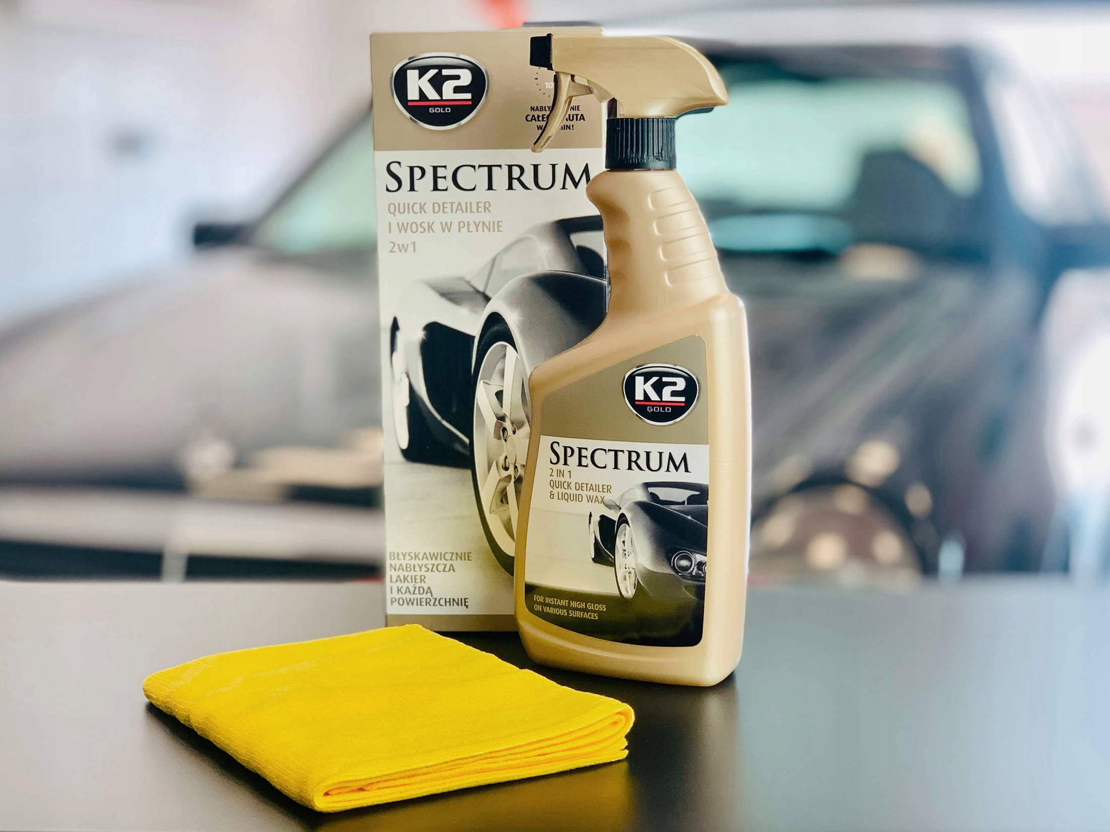 K2 SPECTRUMсинтетический жидкий воск (Quick Detailer), назначение которого – быстрое придание блеска краске автомобиля.