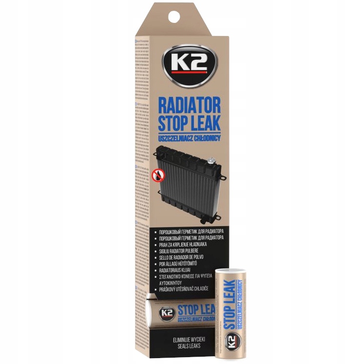K2 STOP LEAK 18.5 G – быстродействующий, эффективный и полностью безопасный герметик для радиаторов с микрочастицами алюминия. Это самый продаваемый продукт такого типа в Польше.