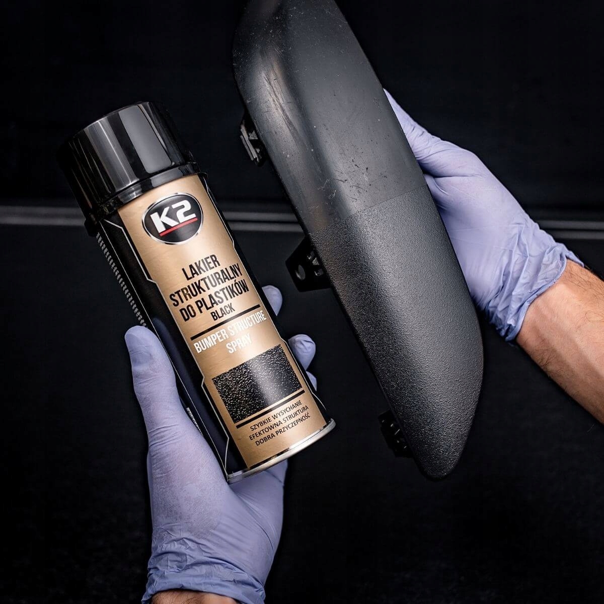 Быстросохнущая структурная краска для черного пластика. Для покраски бамперов без необходимости нанесения грунтовки. Создает покрытие, устойчивое к повреждениям. В зависимости от ваших потребностей позволяет получить соответствующую текстуру, маскирующую дефекты поверхности и имитирующую естественный вид пластика.