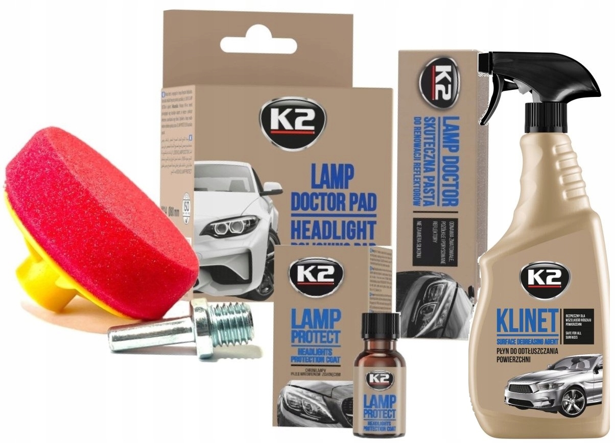 Идеальное дополнение к K2 Паста LAMP DOCTOR — покрытие для защиты фар K2 Lamp Protect, которое защищает лампы от матирования, пожелтения, царапин и УФ-лучей на срок до года после нанесения покрытия.