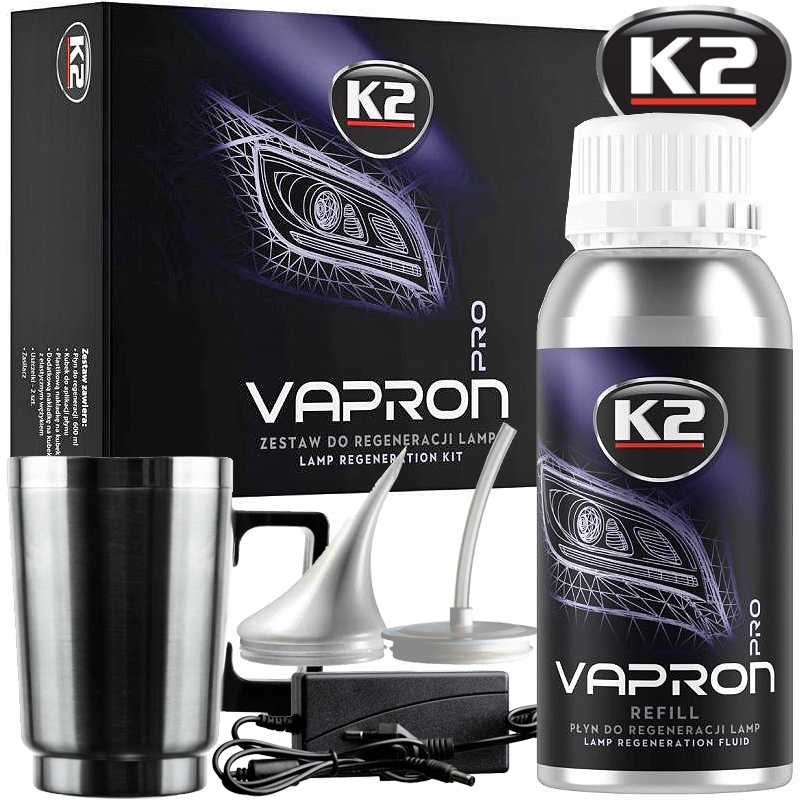 ✅ K2 Vapron — профессиональный набор для регенерации и защиты поврежденных ламп, в народе называемый «фарный чайник» или «волшебный чайник». Идеально подходит для восстановления поврежденных (тусклых, пожелтевших) фар независимо от возраста автомобиля и степени повреждения ламп.