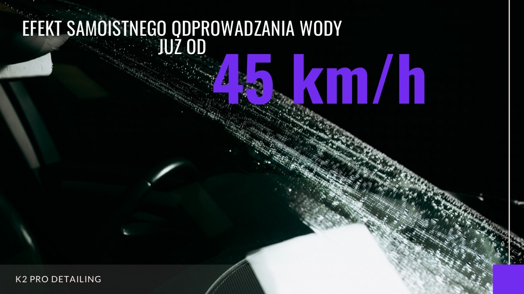 Эффект самопроизвольного отвода воды с поверхности стекла облегчает езду на скорости 45 км/ч. Чем больше скорость или интенсивность осадков, тем эффективнее средство.