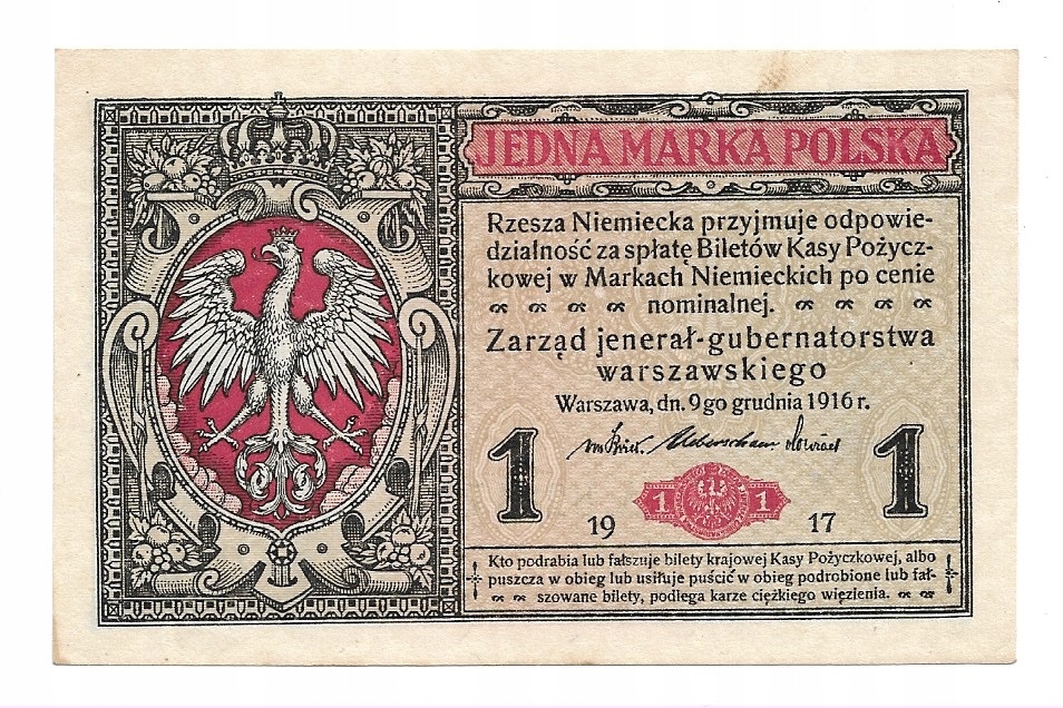 К20 - 1 польська марка 1916 р. - єнерал - Стан 1
