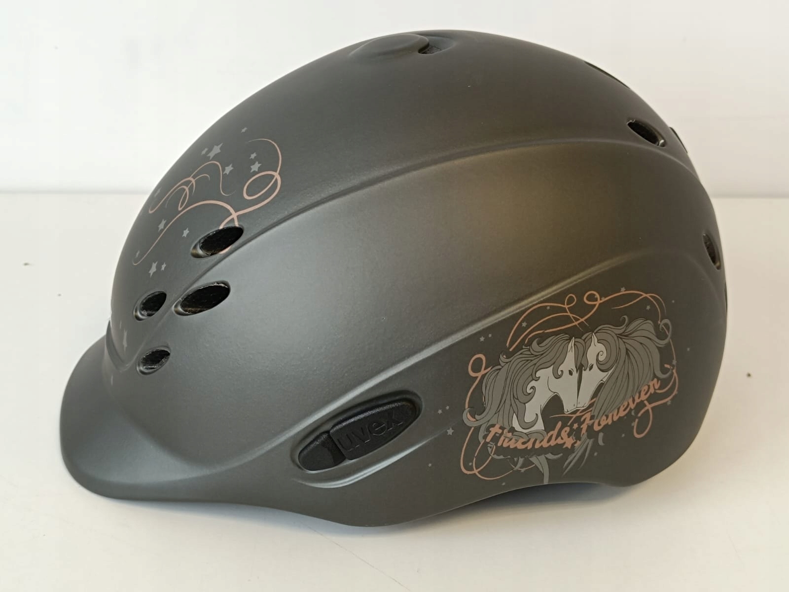 uvex onyxx friends ii -универсальный конный шлем, созданный для потребностей детей. Он сочетает в себе самые высокие стандарты защиты и обеспечивает отличный комфорт для молодых гонщиков. Шлем очень легкий и оснащен очень хорошей системой вентиляции. Интерьер шлема был выровнен современной, дышащей подкладкой, обеспечивая полный комфорт даже во время неблагоприятных условий и интенсивных физических усилий. Подкладка съемная, и вы можете быть промыты в стиральной машине.