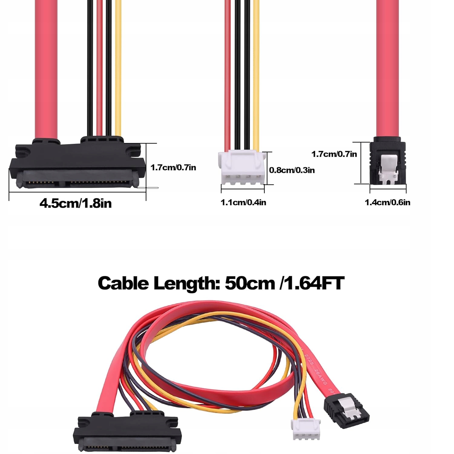 Длина каждого кабеля: 50 см. В комплекте: 2 22-контактных кабеля SATA 2 в 1.