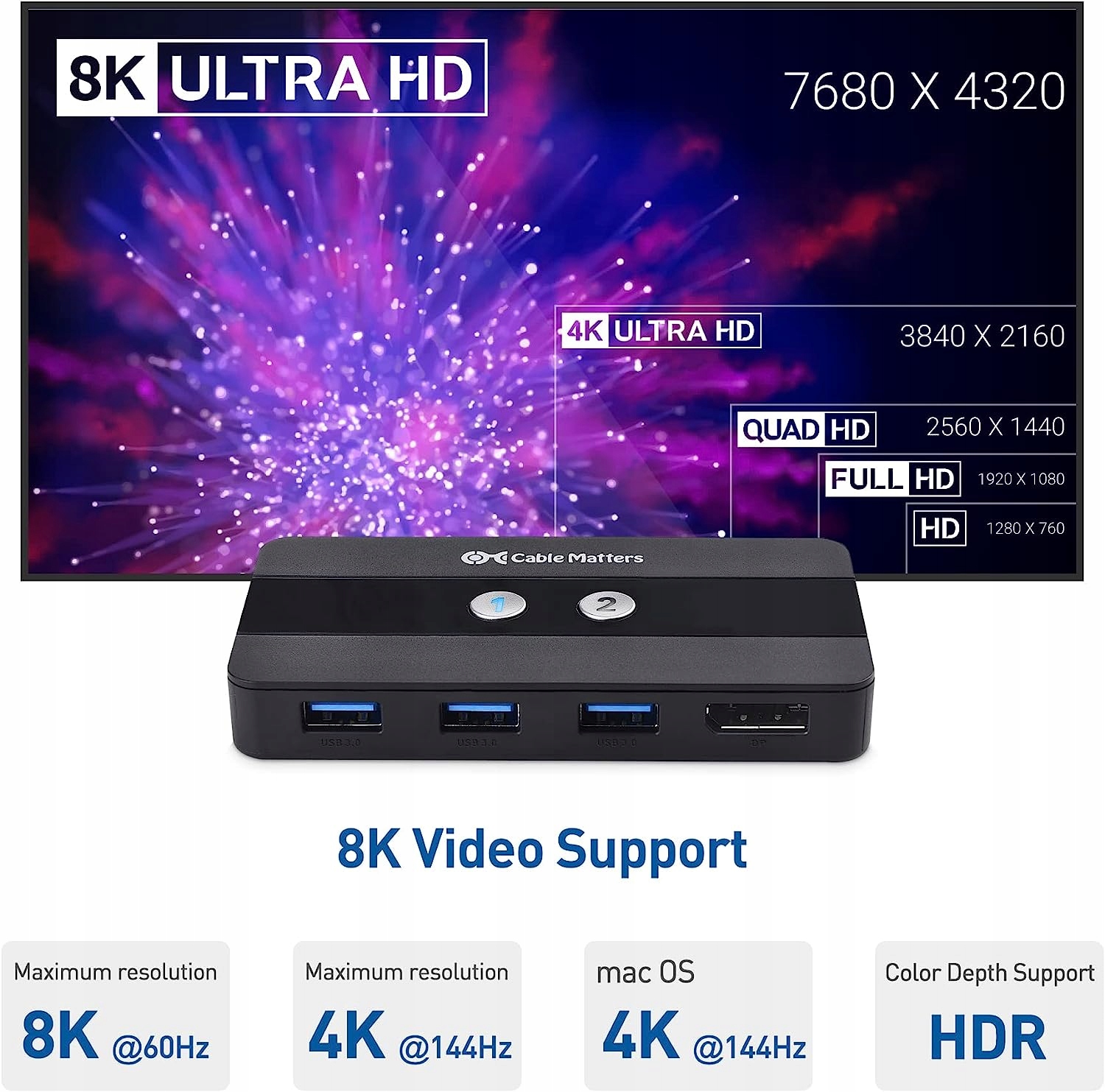 Кабель 4K 60 Гц USB 3.0 має значення подвійного перемикача