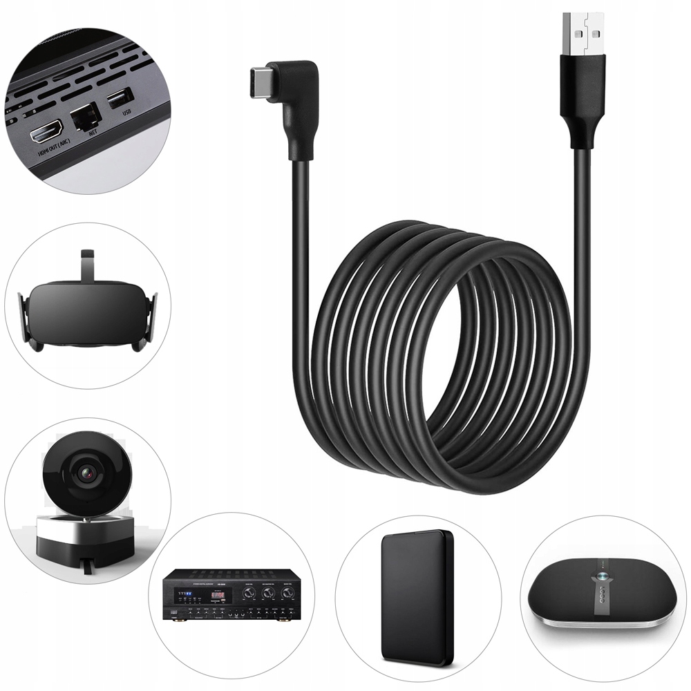 КАБЕЛЬ 5 м для OCULUS LINK SteamVR QUEST 2 1 VR ANGLE CABLE USB-C TYPE C