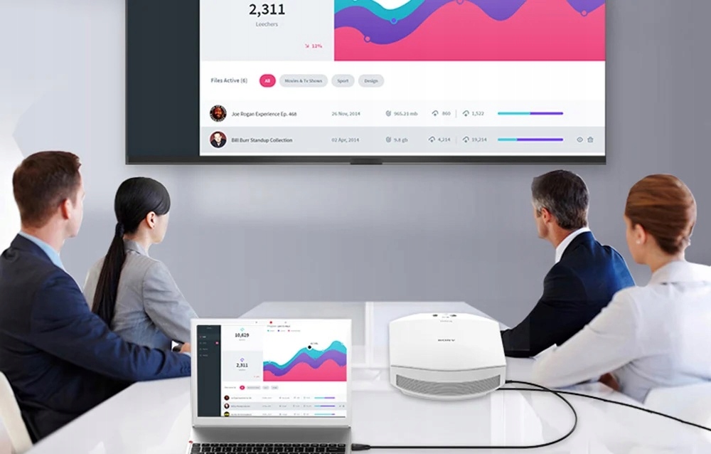 Благодаря возможности отправлять изображение в разрешении 8K/60 Гц, это обеспечивает чрезвычайно выразительный и реалистичный визуальный опыт. Это делает его идеальным для деловых встреч и мультимедийных презентаций.