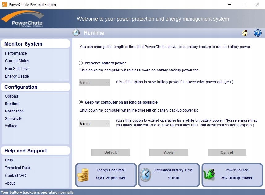 Возможность установить, как долго ИБП может работать от аккумулятора после отключения электроэнергии.