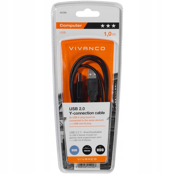 Оплачивая «Кабель бренда y 2 x usb a <--> mini usb для подключения внешнего диска», вы можете быть уверены, что данный товар из каталога «A - B» будет доставлен из Польши и проверен на целостность. В цене товара, указанной на сайте, учтена доставка из Польши. Внимание!!! Товары для Евросоюза, согласно законодательству стран Евросоюза, могут отличаться упаковкой или наполнением.
