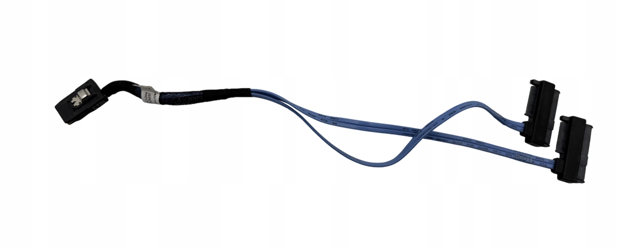 Оригинальный кабель SAS для сервера Dell PowerEdge R220, номер детали 0PGKX4. Кабель используется для подключения RAID-контроллера или встроенного хоста SAS с отсеками для дисков, обеспечивая стабильную и быструю связь с носителями данных. Объект взят с рабочего сервера и полностью функционален.