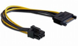 Кабель питания Delock, позволяющий подключить 6-контактный разъем питания видеокарты PCI-Express к блоку питания компьютера со штекером Power SATA.