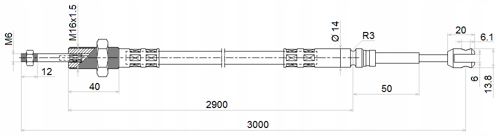 - Стяжной стержень с резьбой M6x1 и корпусом с резьбой M16x1,5