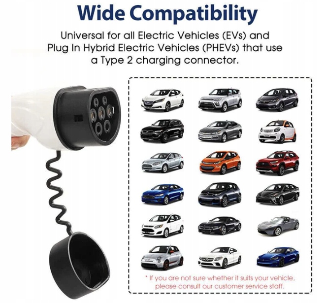 Универсальный для всех электромобилей (EV) и гибридных электромобилей с подключаемым модулем ( PHEV), которые используют разъем для зарядки типа 2