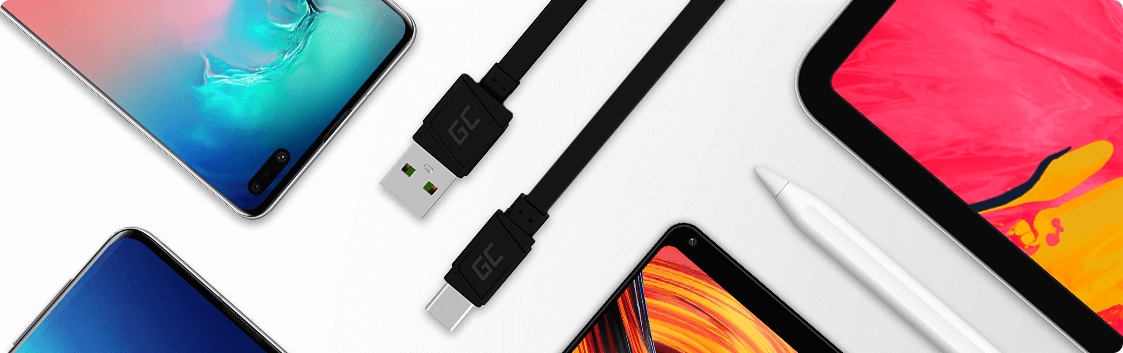 Кабель Green Cell GCmatte USB — USB Type C Flat, 25 см, с поддержкой быстрой зарядки