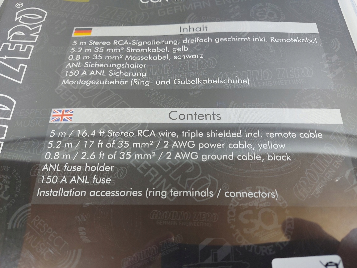 GROUND ZERO GZPK 35X-II сечением 35 мм2 КОМПЛЕКТ КАБЕЛЕЙ ДЛЯ УСИЛИТЕЛЯ