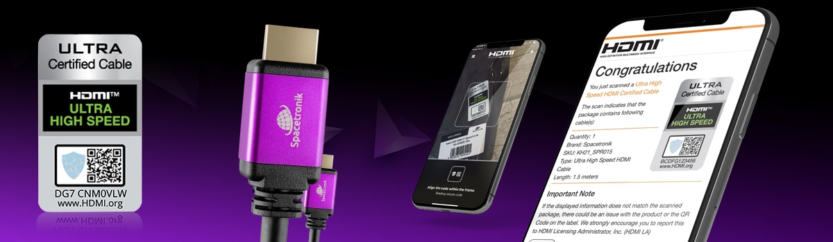 Кабель Spacetronik сертифицирован как Ultra High Speed HDMI Certified Cable, что гарантирует соответствие кабеля высоким стандартам производительности и качества, установленным создателями технологии HDMI.
