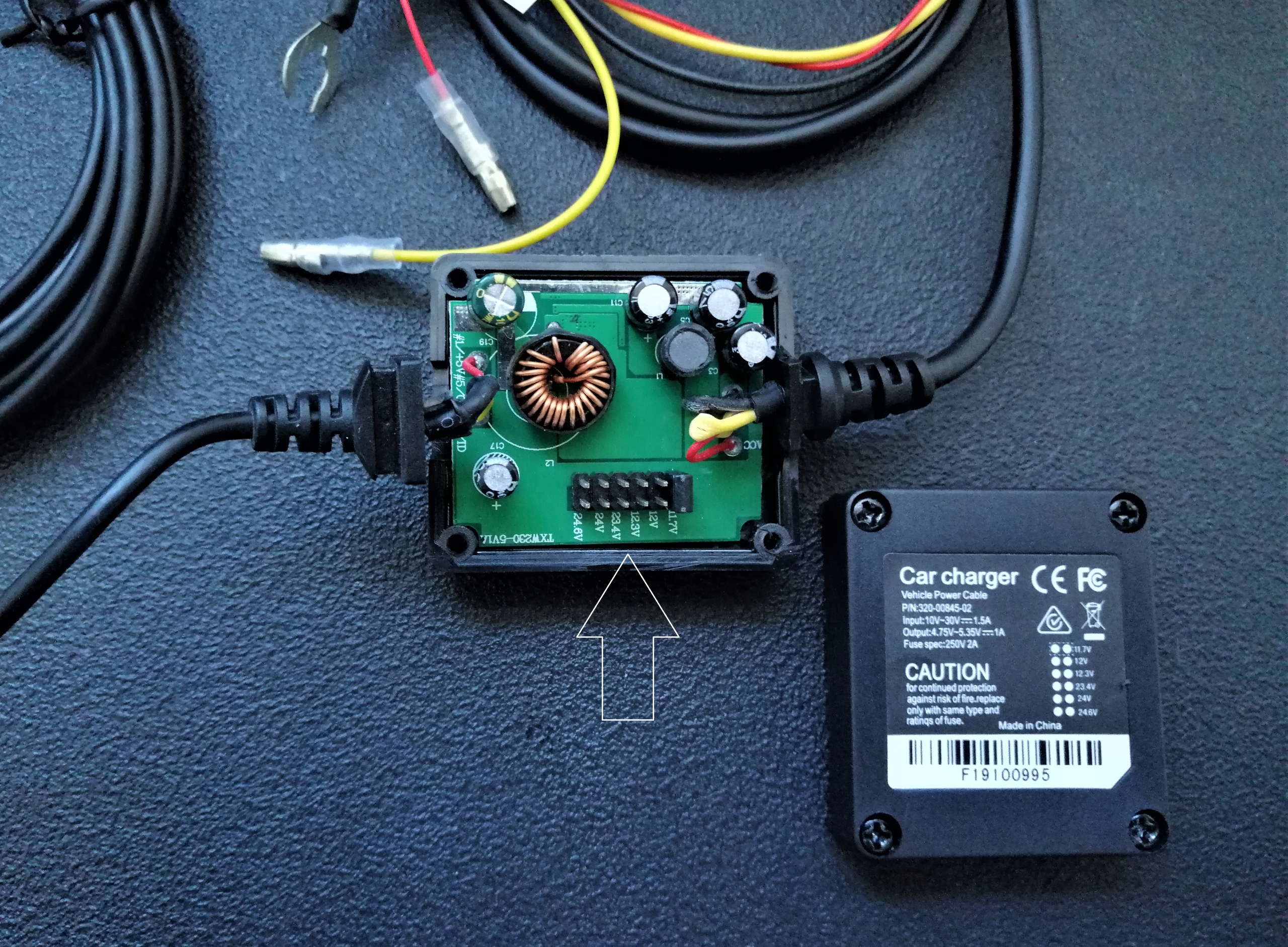 Уровень отключения при низком напряжении кабеля режима парковки по умолчанию установлен на 11,7 В, что подходит для большинства легковых автомобилей. Если вы хотите увеличить этот уровень отсечки до 12 или 12,3 В, просто открутите крышку блока управления и переместите перемычку на соответствующие контакты (см. фото напротив, белый цвет). стрелка). Уровни отключения системы 23,4, 24 или 24,6 В также доступны для грузовых автомобилей!