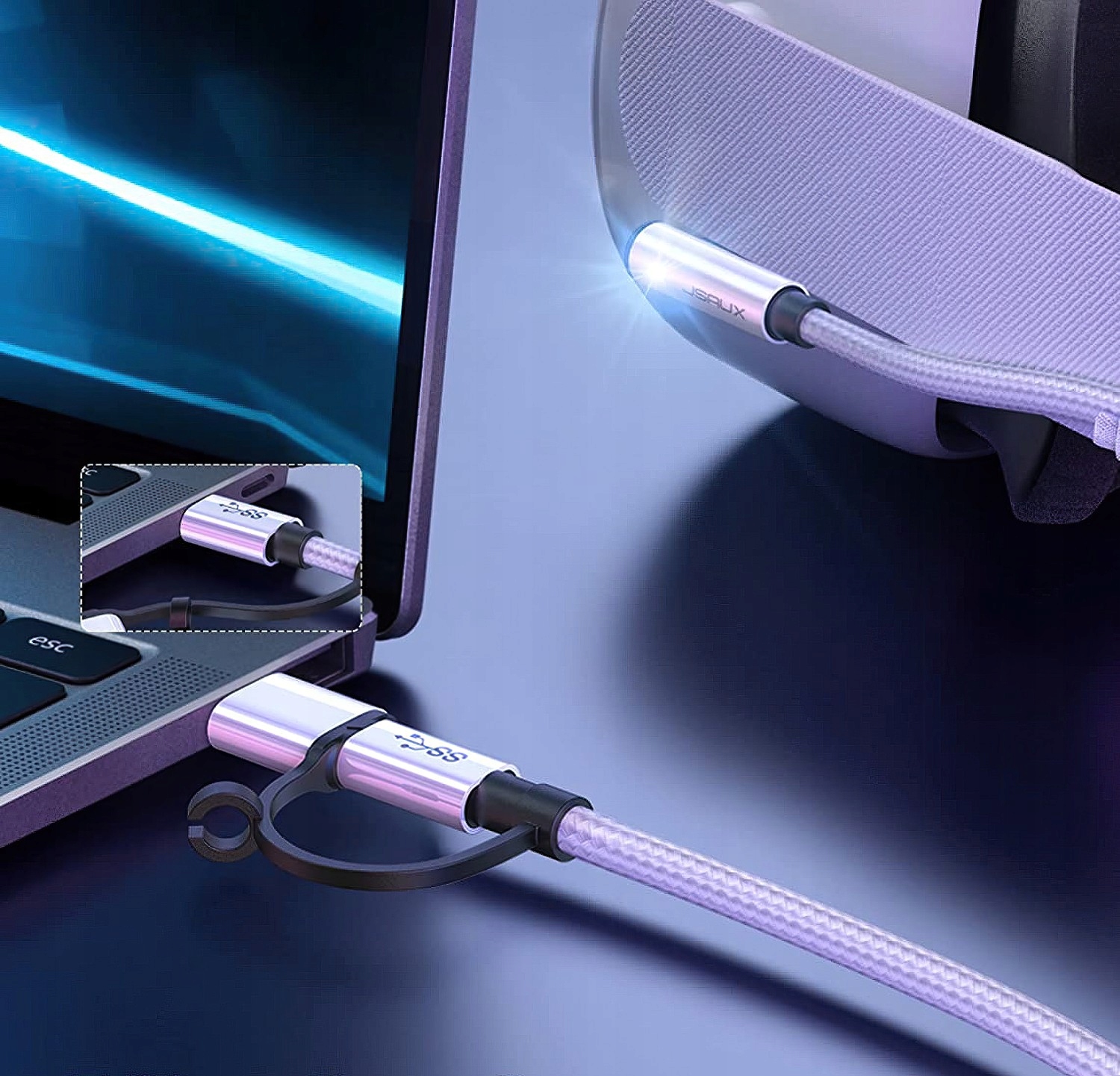 ✅ Соединительный кабель USB-A/USB-C обеспечивает быструю передачу данных, что позволяет проводить плавные и без задержек игровые сеансы в виртуальной реальности.