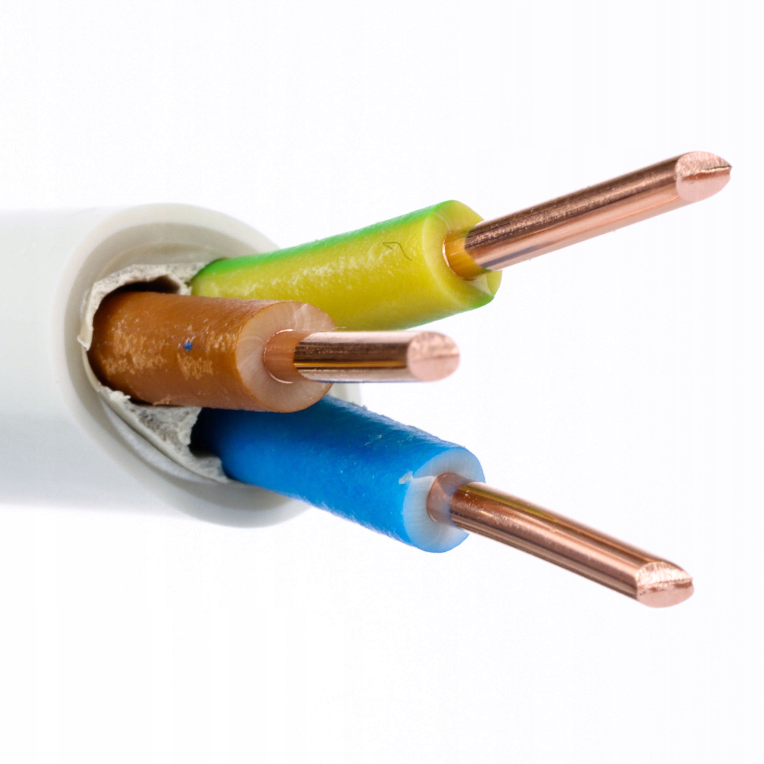 Кабель с однопроволочными медными жилами в ПВХ-изоляции и ПВХ-оболочке с зелено-желтой защитной жилой.