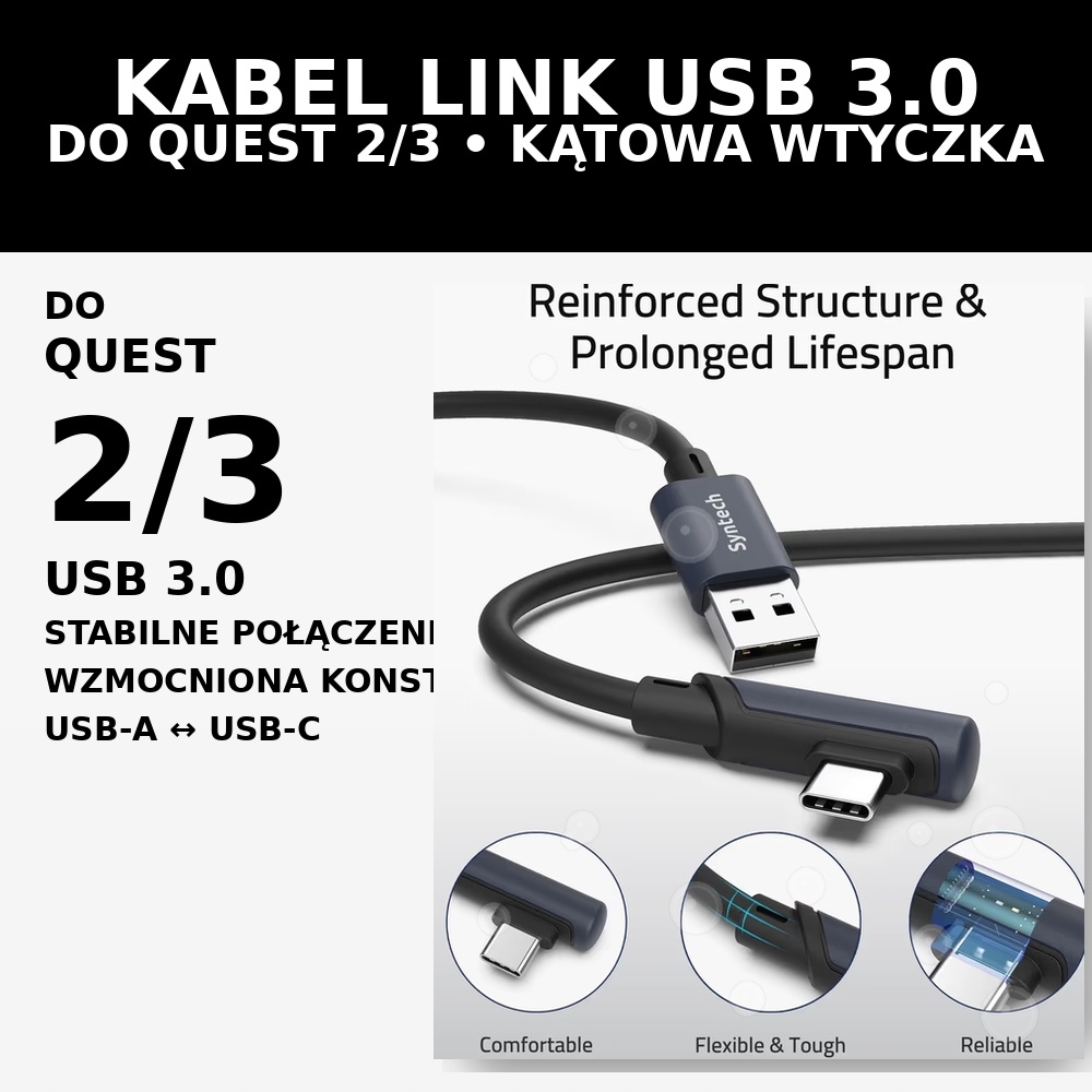 КАБЕЛЬ LINK SYNTECH 3M ДЛЯ БЫСТРОЙ ПЕРЕДАЧИ ДАННЫХ QUEST 2 PICO 4 USB 3.0