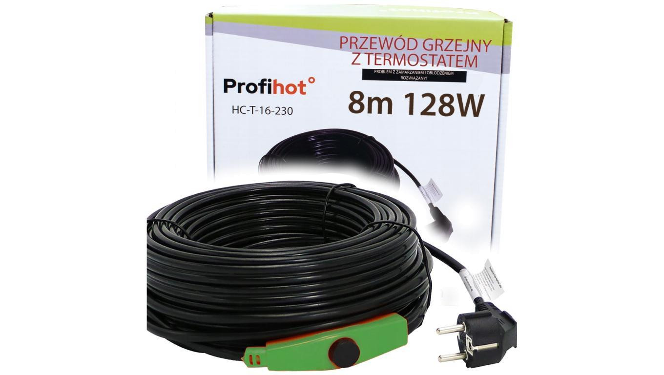 КАБЕЛЬ НАГРІВАЛЬНИЙ З ТЕРМОСТАТОМ 230В 128ВТ 8М