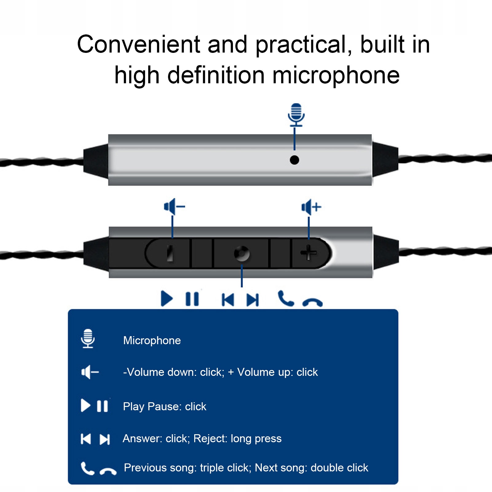 3. Интегрированный микрофон: спешний кабель содержит встроенный микрофон и блок управления, позволяющий ATWE для микрофона при или питинг. Управляйте громкостью без усилий, воспроизводите музыку и получайте финальные столкновения, воспроизводите предыдущую или следующую песню, легко выполнять госку, видео разговоры и живые потоки.