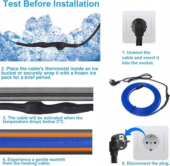 - Легкая установка: этот нагревательный кабель для водопроводных труб поставляется до -собранным и готовым для легкой установки. Просто подключите нагревательный кабель, чтобы почувствовать свет на кабеле в течение нескольких минут (если вы хотите проверить его перед установкой, это должно быть сделано при температуре ниже 0 ° C).