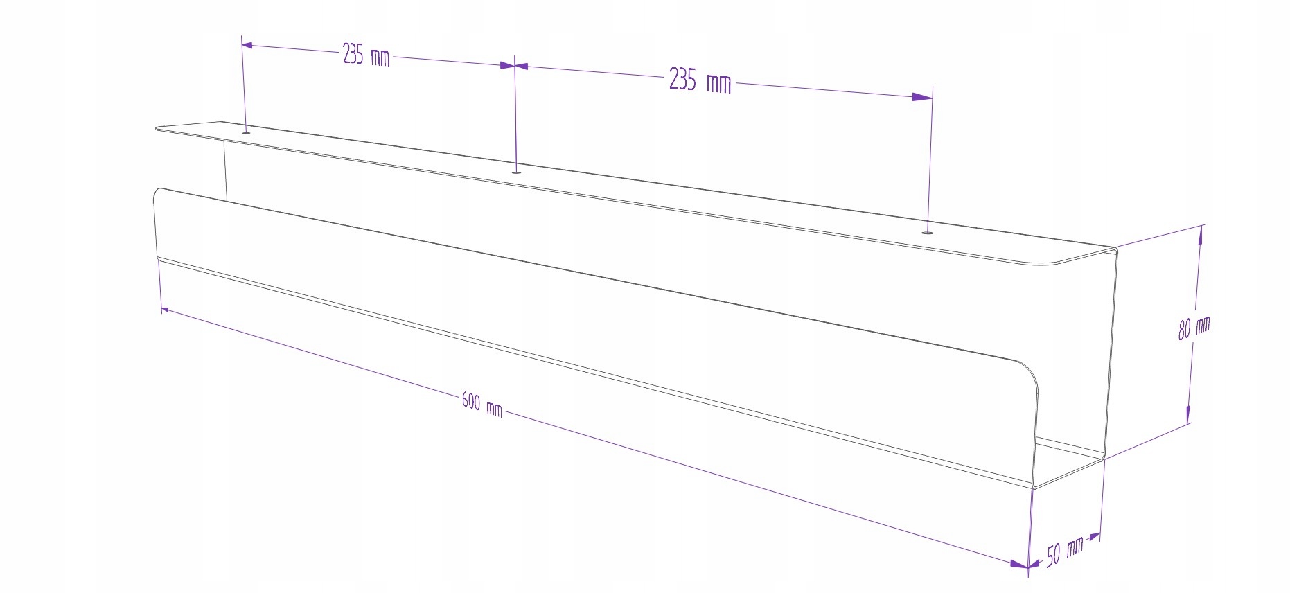 - Размеры: 600 мм x 80 мм x 50 мм.