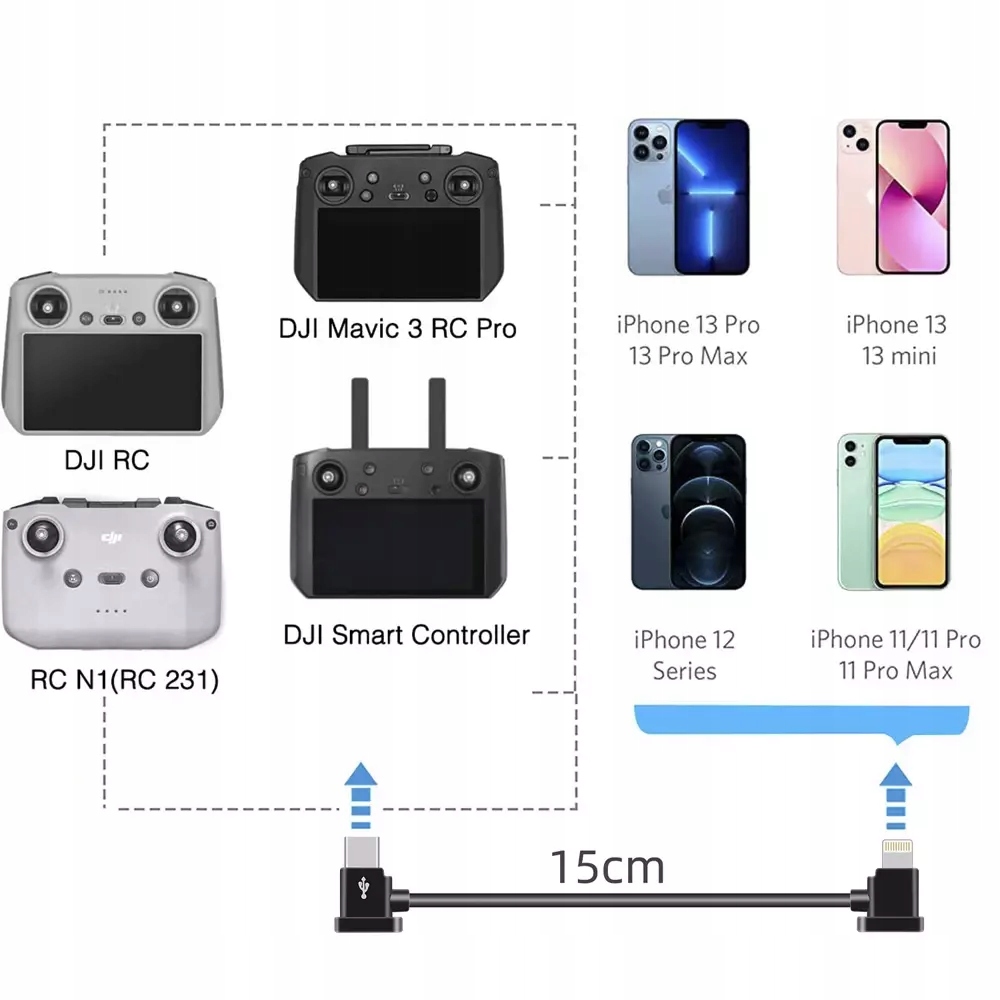 Этот кабель позволяет подключать контроллеры дронов к телефонам, смартфонам и планшетам, обеспечивая передачу данных и изображений между контроллером и установленным на нем устройством.