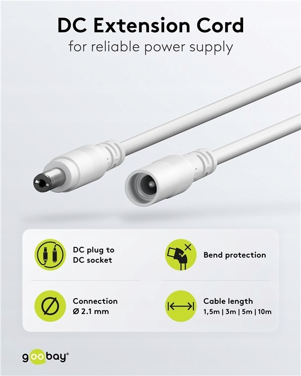 Удлинительный кабель постоянного тока, 1,5 м, белый - Длина кабеля 1,5 м