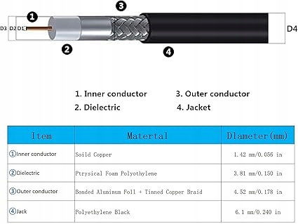 - ✔Коаксиальный кабель с низкими потерями, размер S-LMR240, длина 36 футов (11 метров), полное сопротивление: 50 Ом. S-MR240 предлагает значительно больший центральный проводник и обеспечивает лучшее удержание сигнала при использовании более длинных кабелей и более высоких частот.