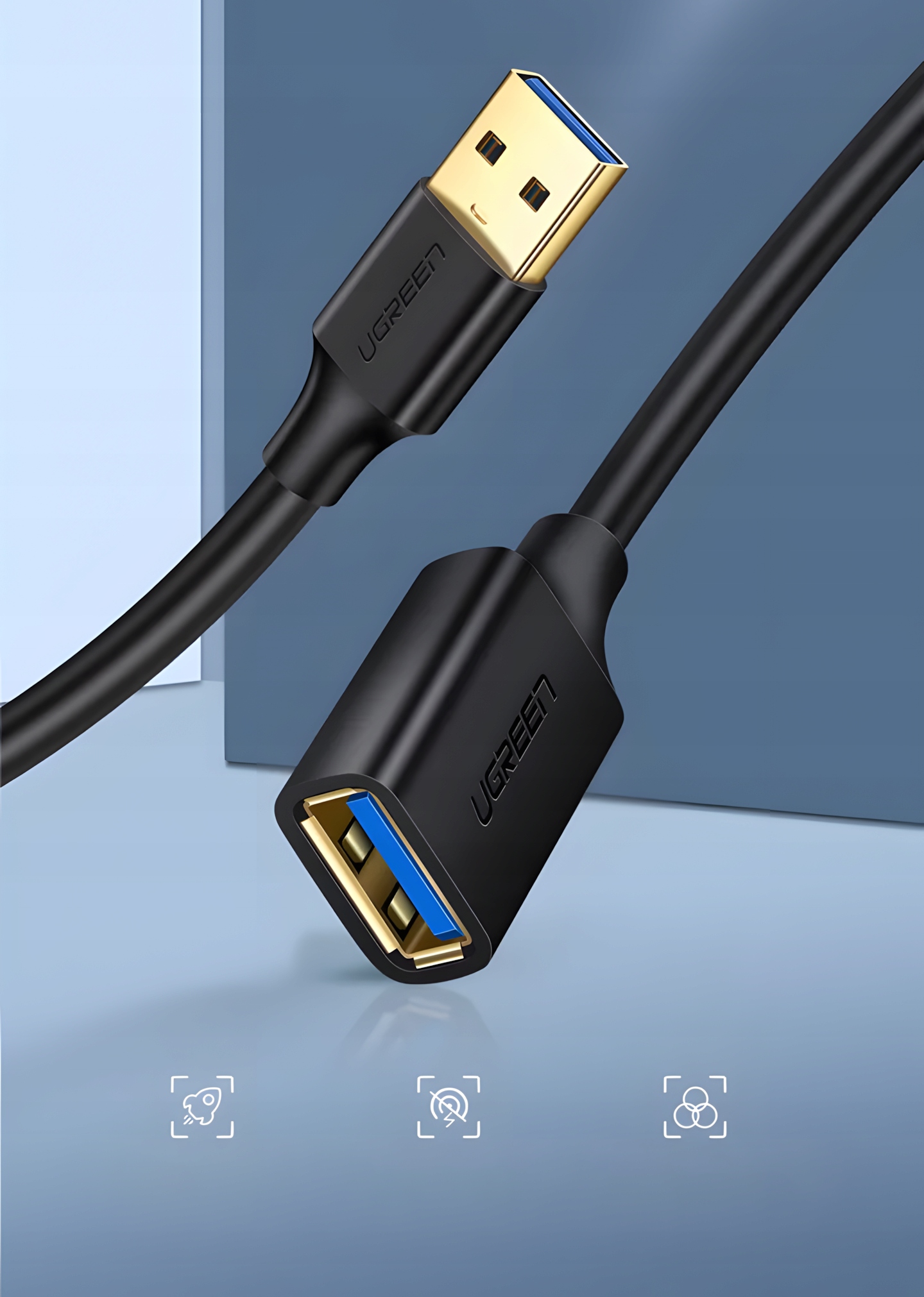 Кабель UGREEN USB-A 3.0 отличается высоким качеством, долговечностью и эстетикой. Кабель изготовлен из высококачественных материалов, а его наконечники позолочены. Этот USB-кабель может использоваться как расширение. Он обеспечивает скорость передачи данных до 5 Гбит/с, что в 10 раз лучше, чем у USB 2.0. Все это было сделано из прочных материалов. Кабель совместим с широким спектром продуктов.